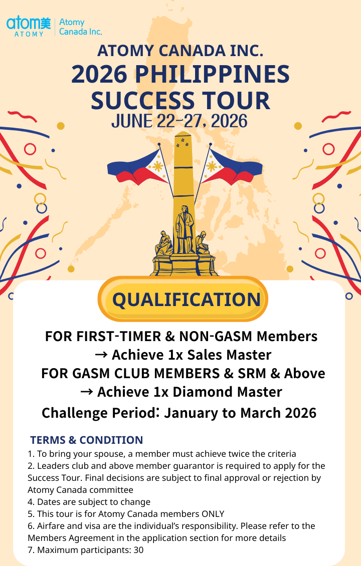Applications are now open for the 2026 Philippines Success Tour. Members who meet the qualifications are kindly requested to access the Google Form link below and submit their application: