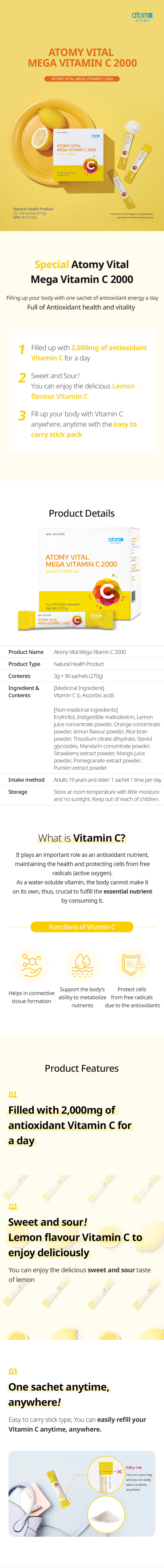 [4+1] Vital Mega Vitamin C 2000 (3g x 90 Sachets)