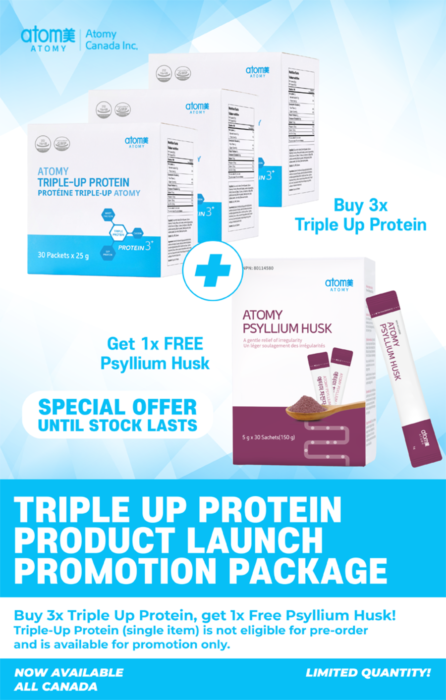 Triple Up Protein (25g X 30 Sachets) - Buy 3, Get a Psyllium Husk